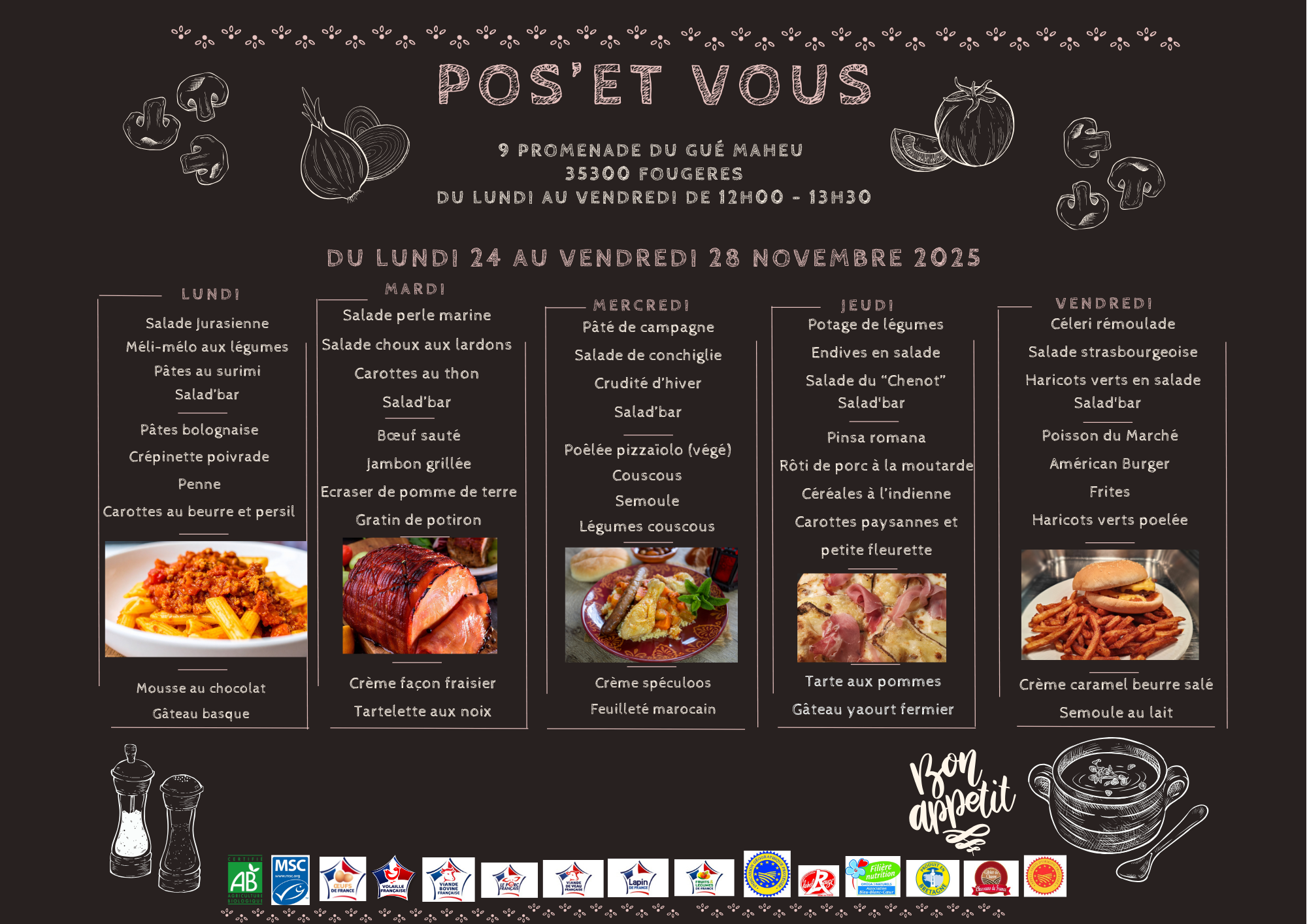 Pos’et vous, proche du centre-ville avec parking, votre restaurant vous accueille du lundi au vendredi de 12h00 à 13h30 et vous propose de déguster une cuisine engagée écoresponsable.